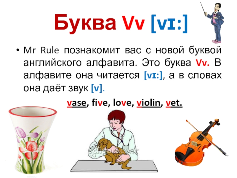 новой буквой английского алфавита. Это буква Vv. В алфавите она читается [vɪ:], а в словах она даёт звук [v].
