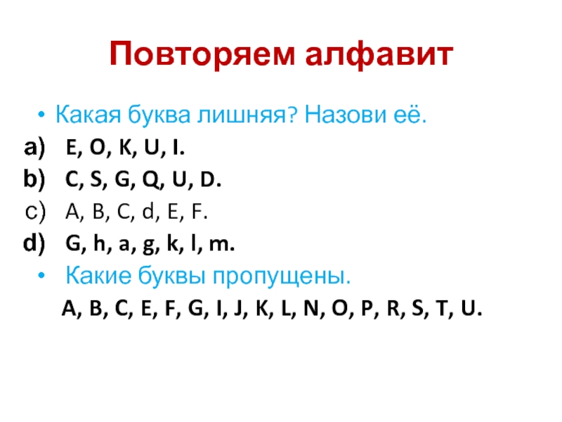 A, B, C, E, F, G, I, J, K, L, N, O, P, R, S, T, U.