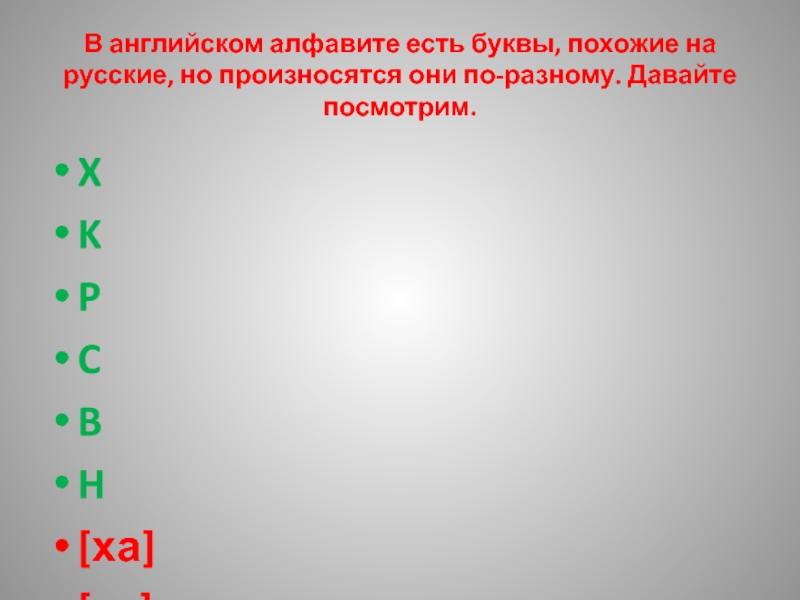 Слайд 17В английском алфавите есть буквы, похожие на русские, но произносятся они