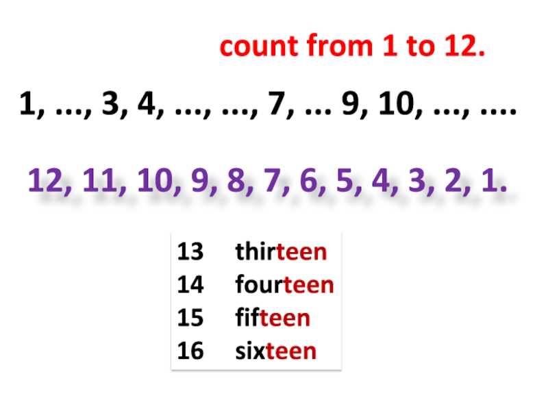 12, 11, 10, 9, 8, 7, 6, 5, 4, 3, 2, 1.