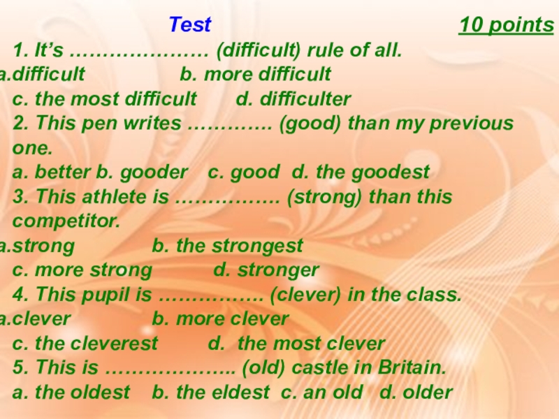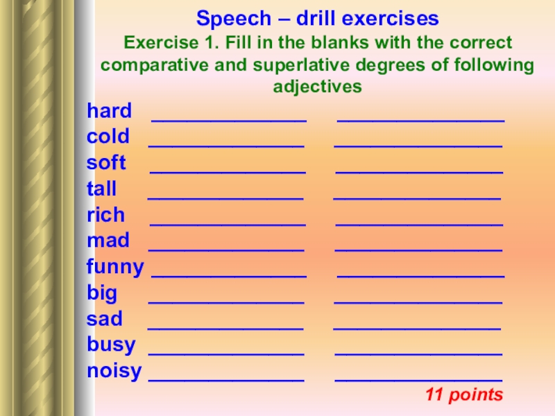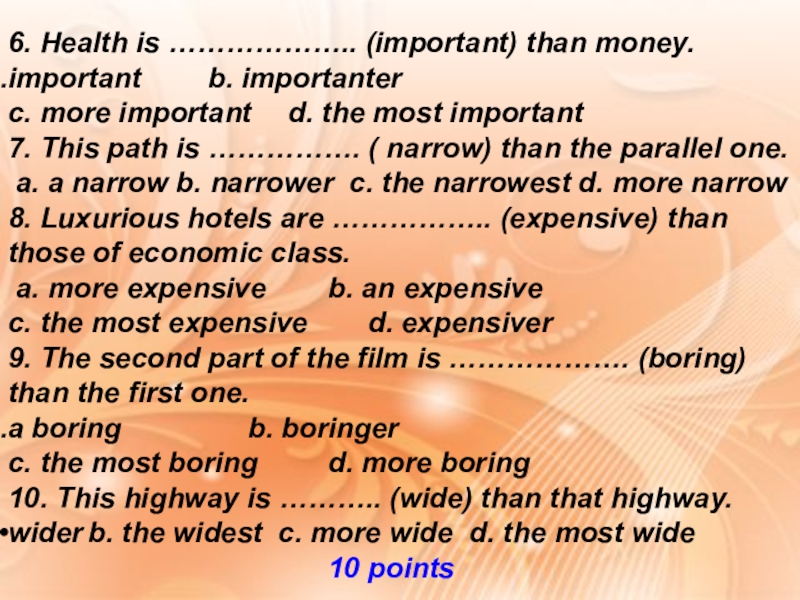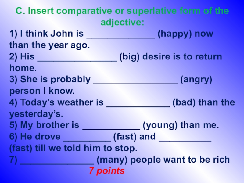 Слайд 10C. Insert comparative or superlative form of the adjective: