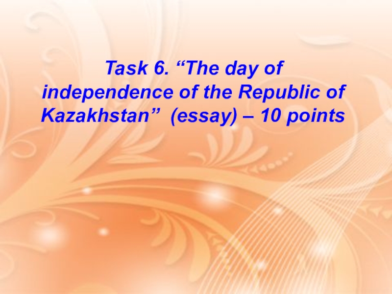 Слайд 14Task 6. “The day of independence of the Republic of Kazakhstan”