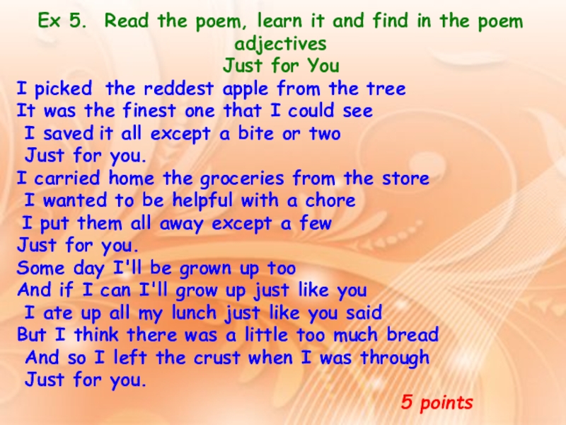 Слайд 13Ex 5. Read the poem, learn it and find in the