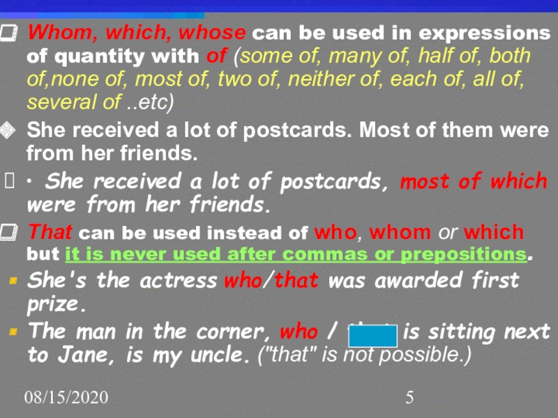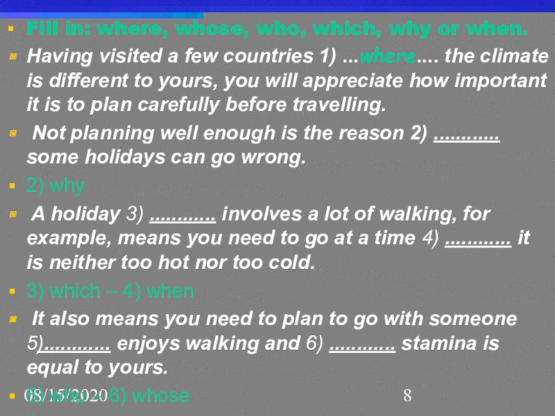 7) who – 8) whose