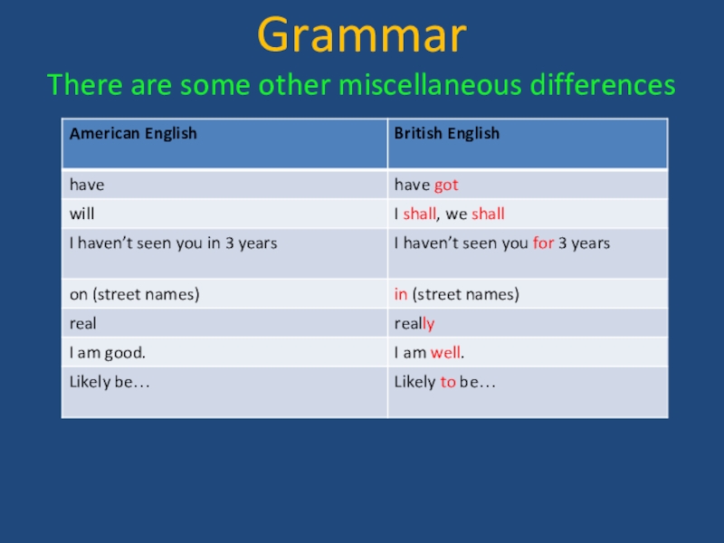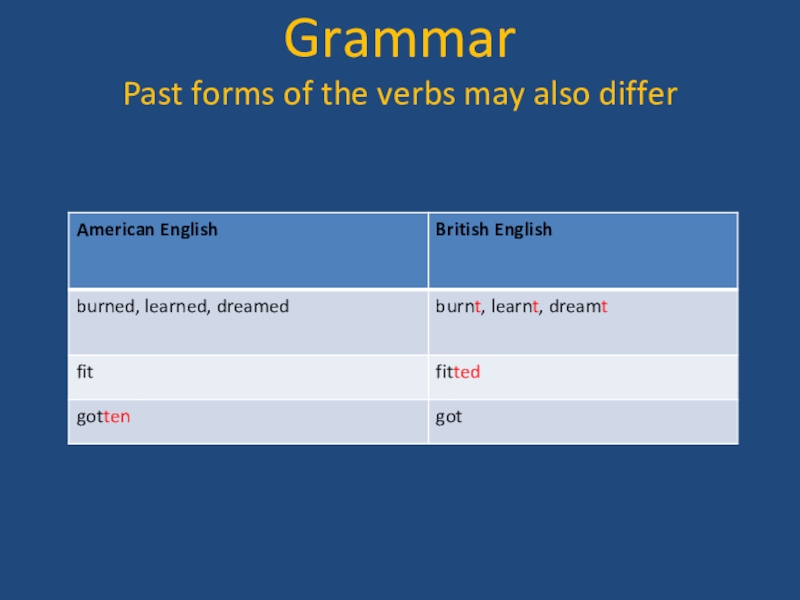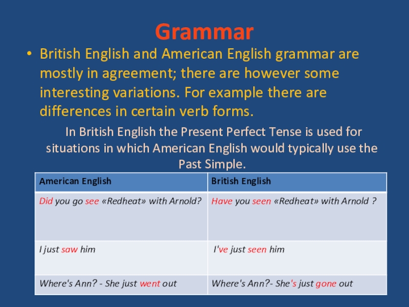 GrammarBritish English and American English grammar are mostly in agreement; there are however some interesting variations. For