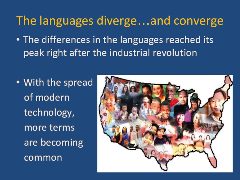 The languages diverge…and convergeThe differences in the languages reached its peak right after the industrial revolutionWith the