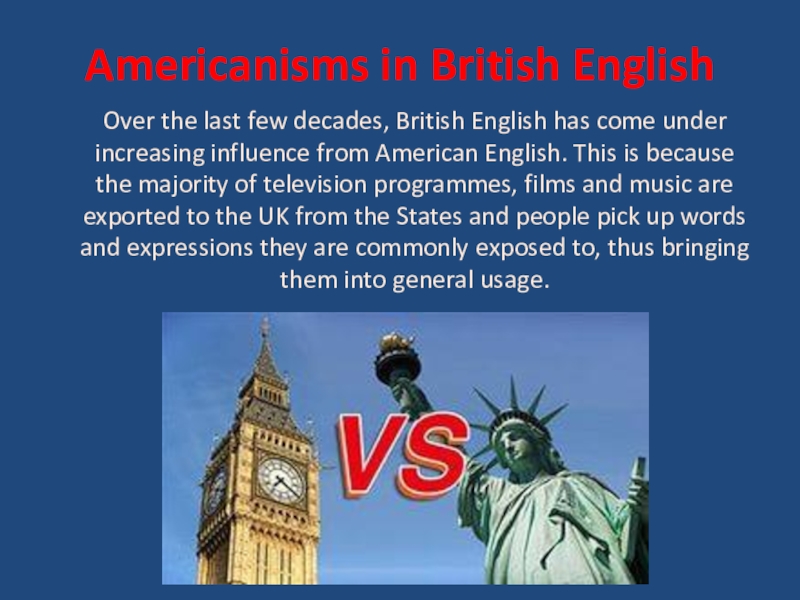 Americanisms in British English   Over the last few decades, British English has come under increasing