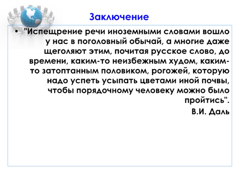 "Испещрение речи иноземными словами вошло у нас в поголовный обычай,