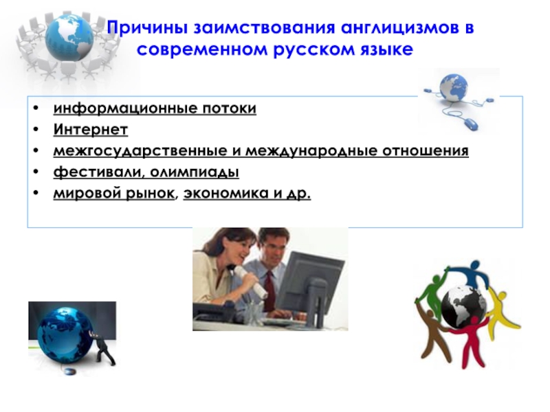 Слайд 51. Причины заимствования англицизмов в современном русском языке