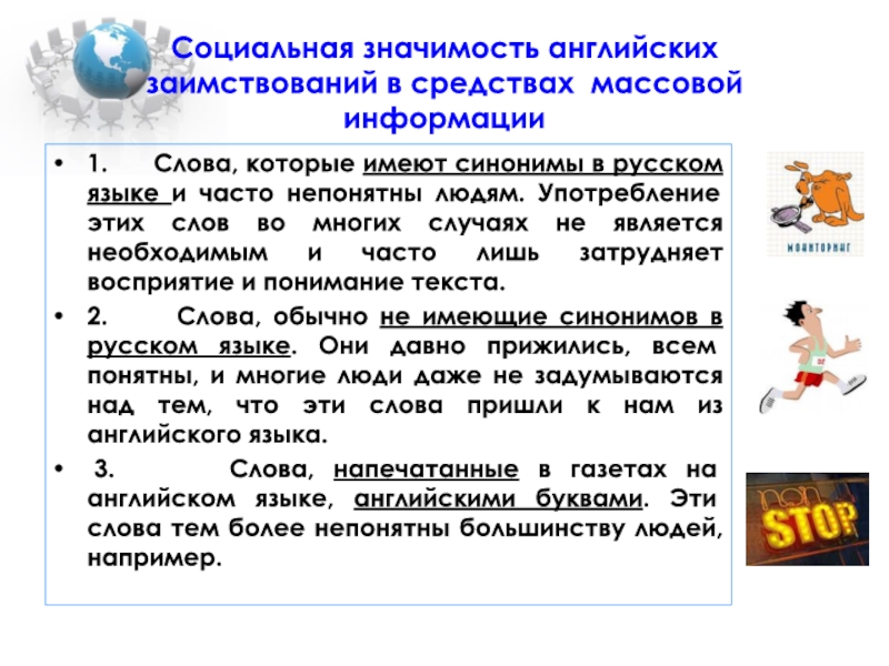 Слайд 8Социальная значимость английских заимствований в средствах массовой информации