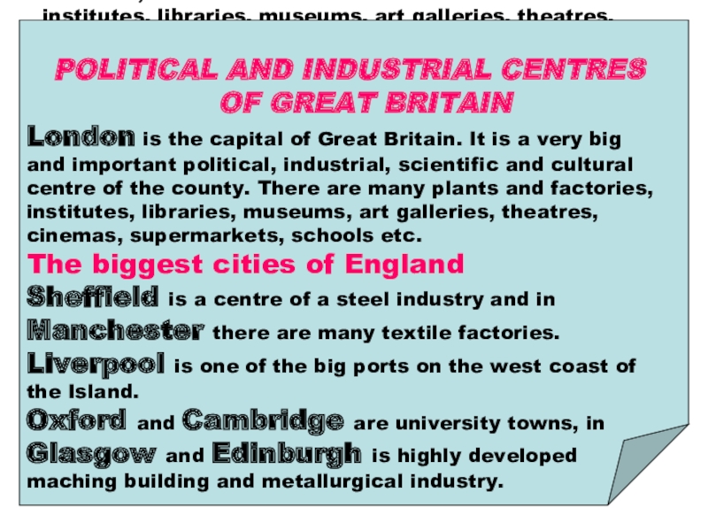 POLITICAL AND INDUSTRIAL CENTRES