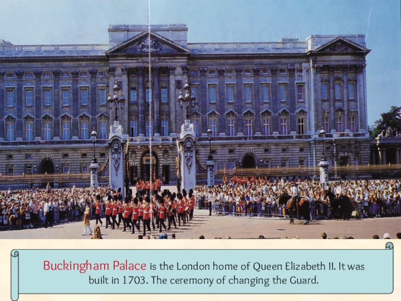 Buckingham Palace is the London home of Queen Elizabeth II. It was