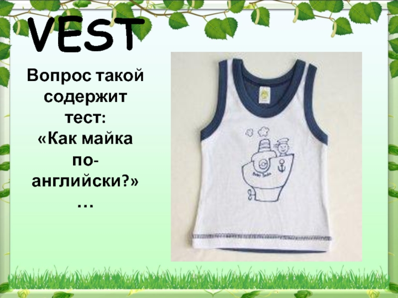 VESTВопрос такой содержит тест:  «Как майка по-английски?» …