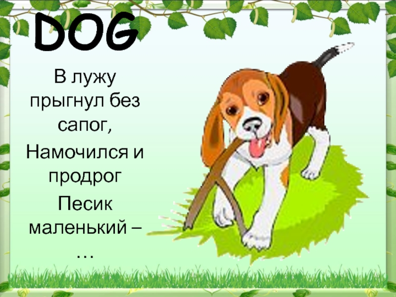 DOGВ лужу прыгнул без сапог,Намочился и продрогПесик маленький – …