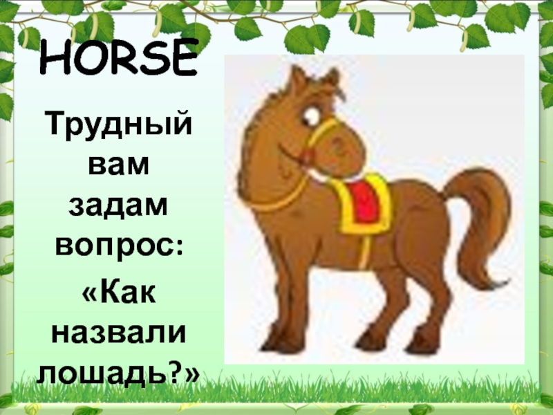 HORSE         Трудный вам задам вопрос:«Как назвали лошадь?» …
