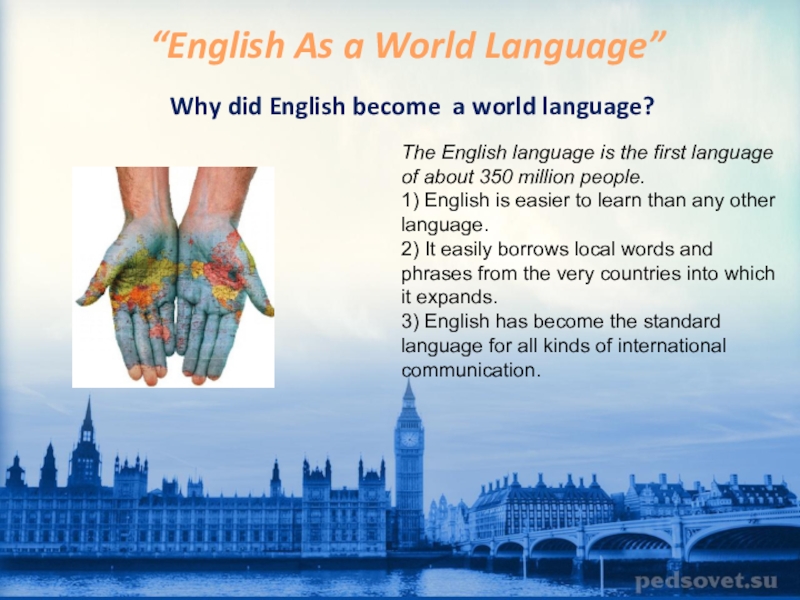 The English language is the first language of about 350 million people.