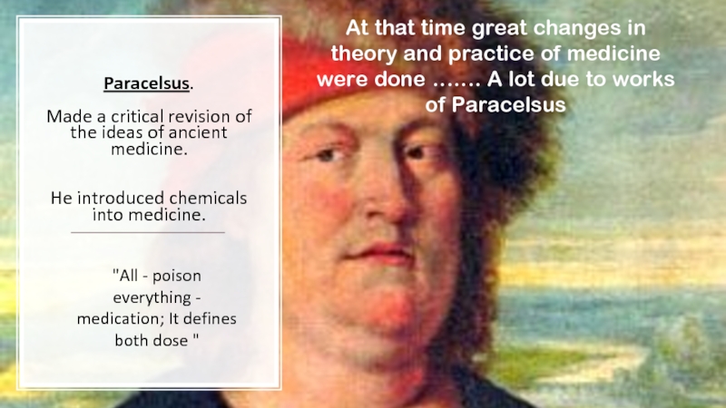 At that time great changes in theory and practice of medicine were done ……. A lot due to works of Paracelsus