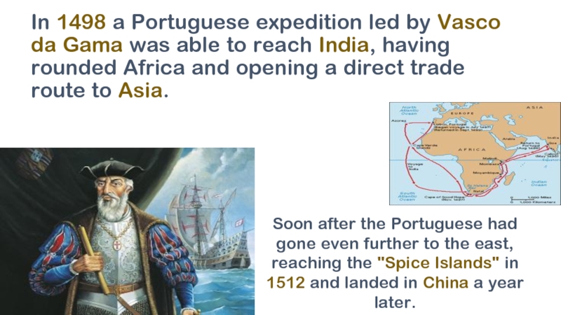 Soon after the Portuguese had gone even further to the east, reaching the "Spice Islands" in 1512 and landed in China a year later.