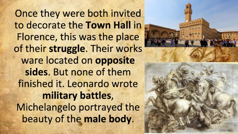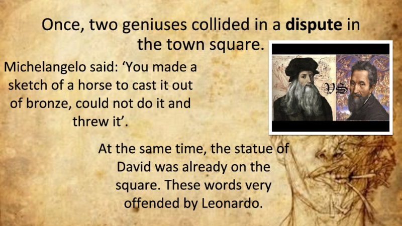 At the same time, the statue of David was already on the square. These words very offended by Leonardo.