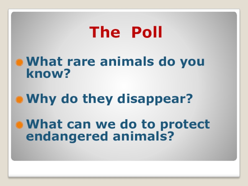 The PollWhat rare animals do you know?Why do they disappear?What can we do to protect endangered animals?