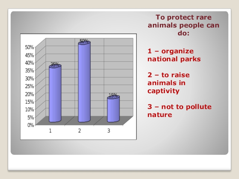 To protect rare animals people can do: 1 – organize national parks2 – to raise animals in