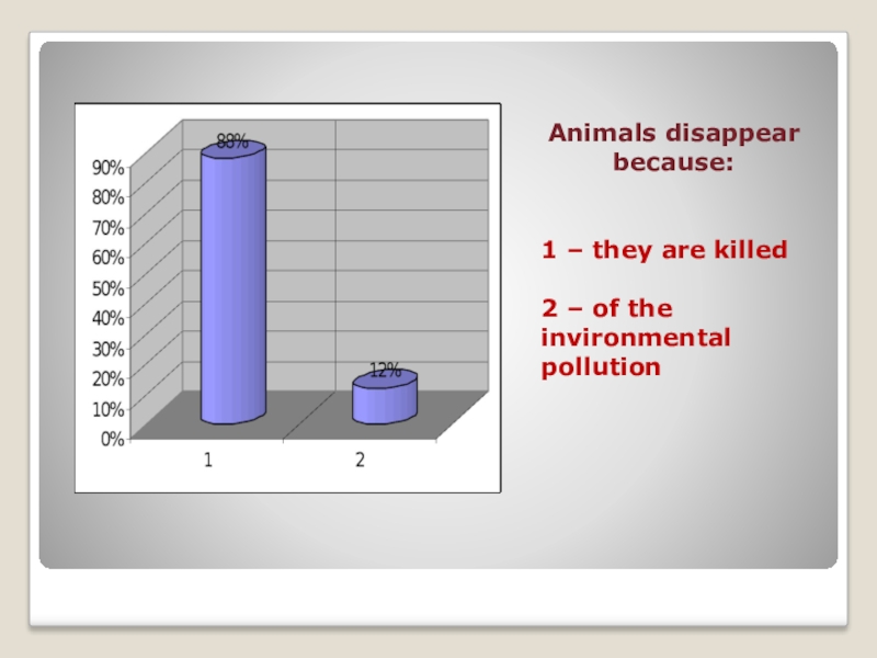 Animals disappear because:  1 – they are killed2 – of the invironmental pollution
