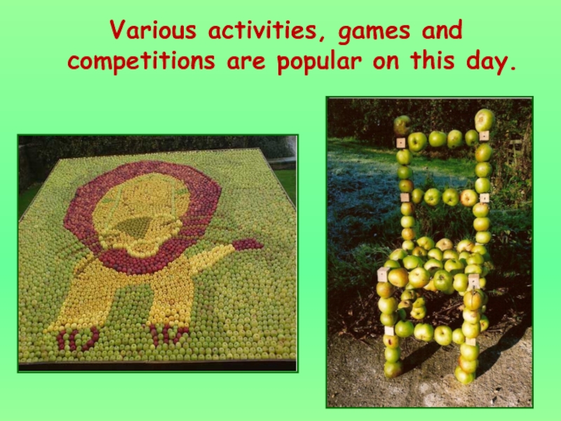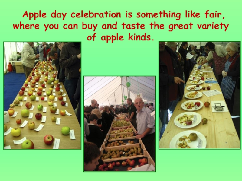 Слайд 8 Apple day celebration is something like fair, where you can