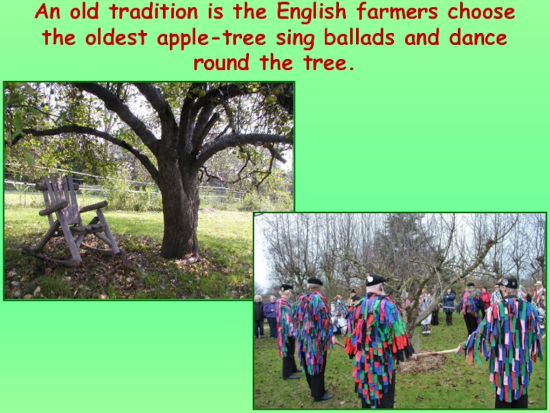 Слайд 16An old tradition is the English farmers choose the oldest apple-tree