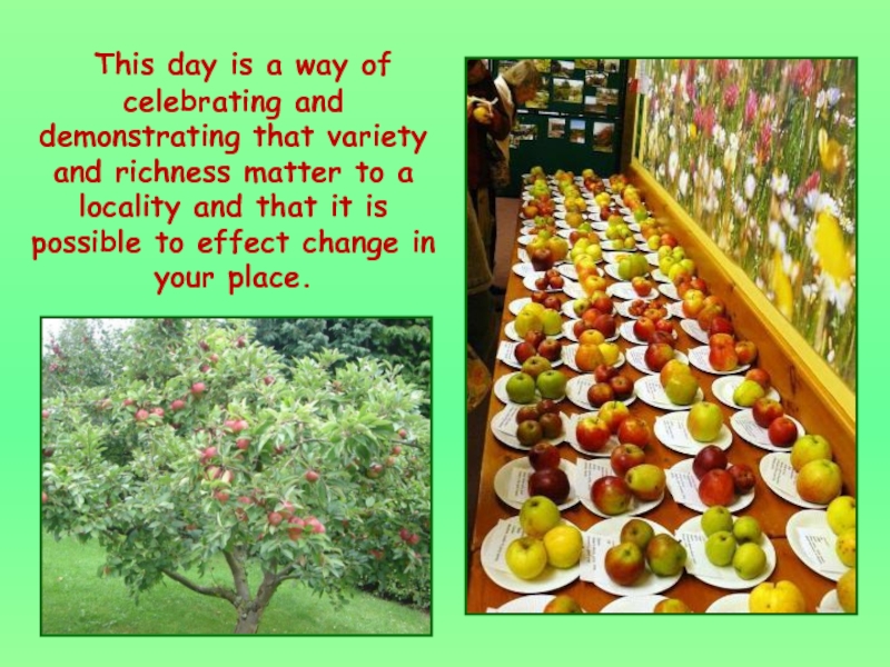 Слайд 3Apple Day is an annual celebration, of apples and orchards. It’s
