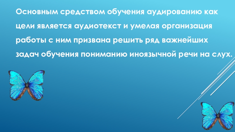Слайд 6Основным средством обучения аудированию как цели является аудиотекст и умелая организация