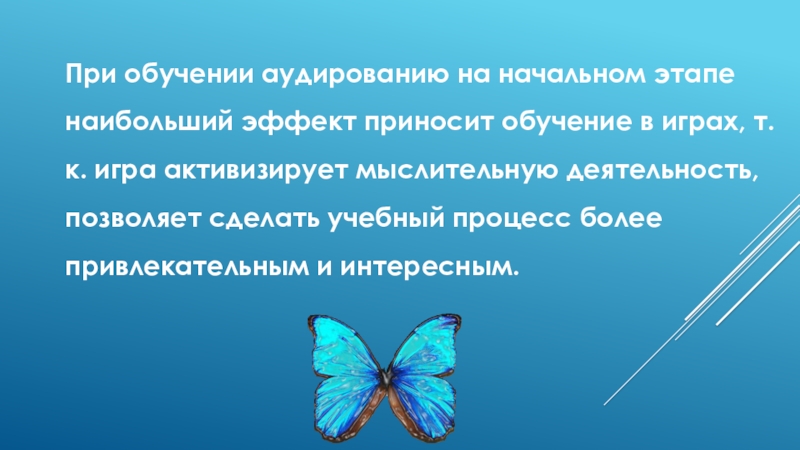 Слайд 4При обучении аудированию на начальном этапе наибольший эффект приносит обучение в