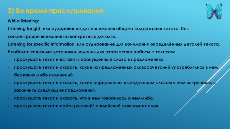 Слайд 112) Во время прослушивания