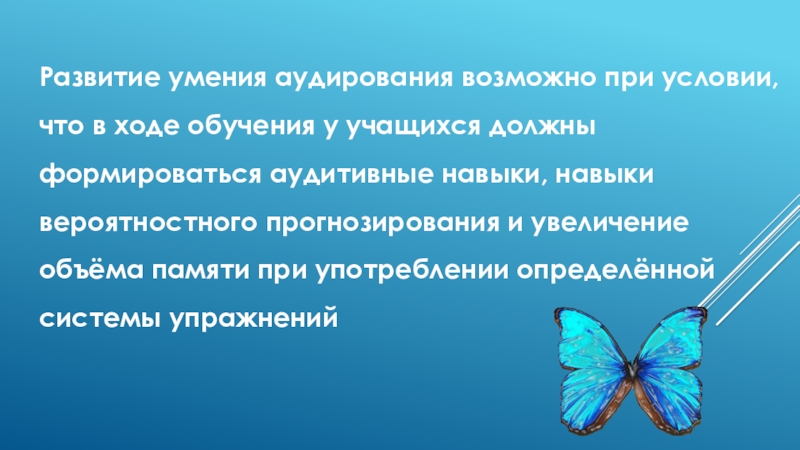 Слайд 3Развитие умения аудирования возможно при условии, что в ходе обучения у