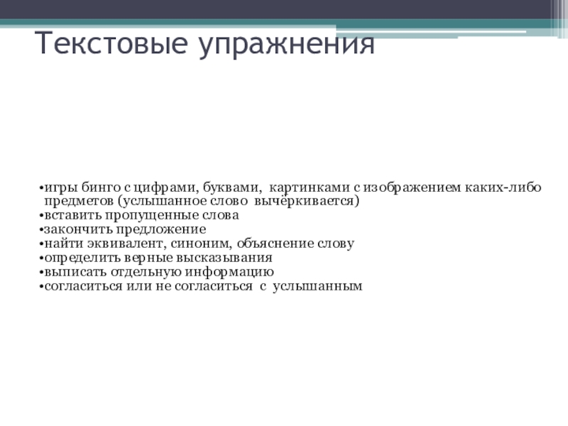 Слайд 10Текстовые упражнения
