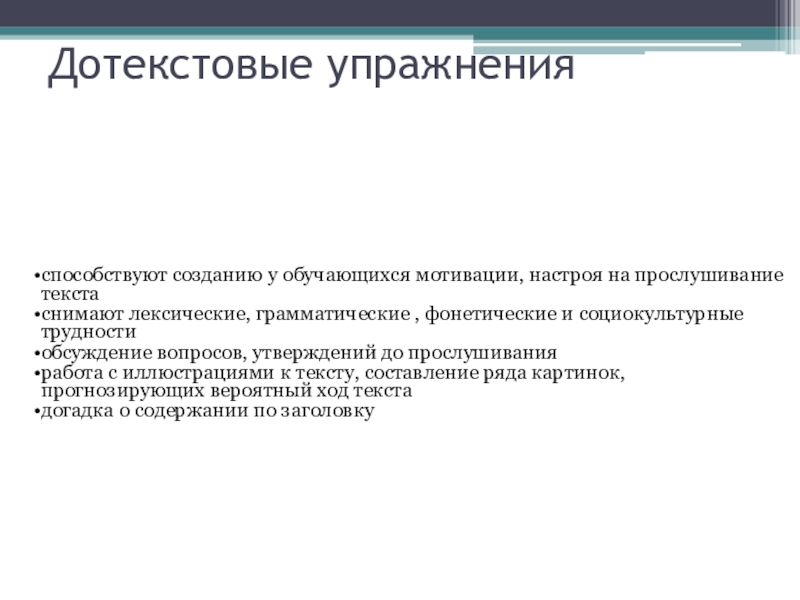 Слайд 9Дотекстовые упражнения