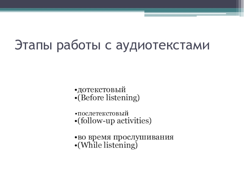 Слайд 8Этапы работы с аудиотекстами