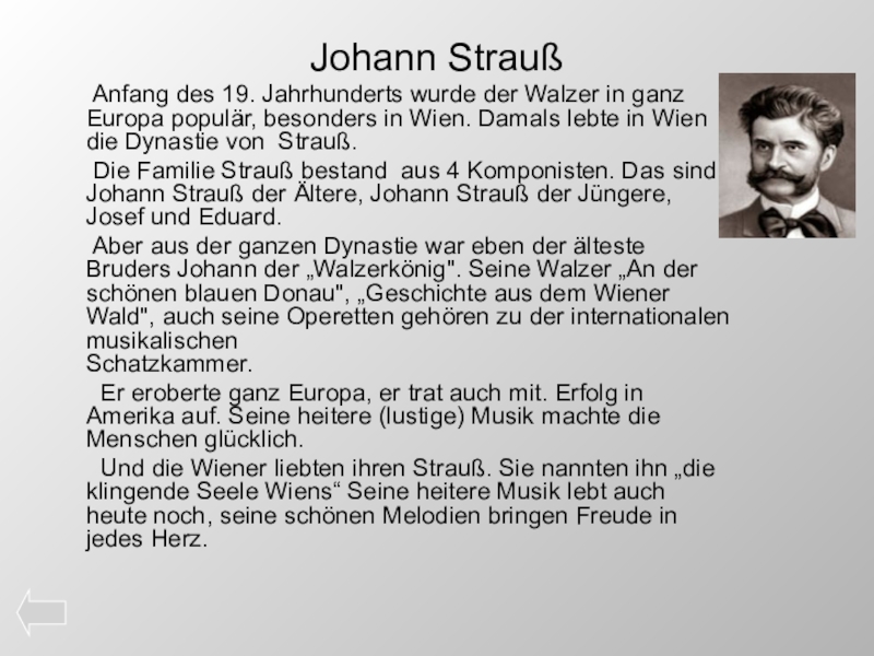 in ganz Europa populär, besonders in Wien. Damals lebte in Wien die Dynastie von Strauß.