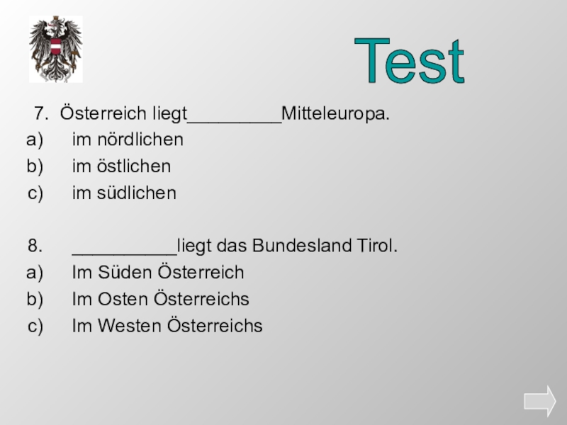 Слайд 427. Österreich liegt_________Mitteleuropa.