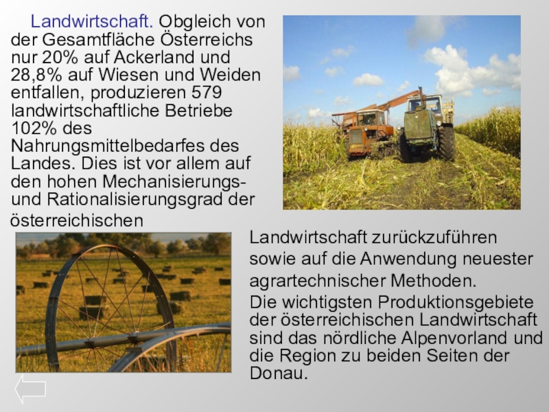 Слайд 27 Landwirtschaft. Obgleich von der Gesamtfläche Österreichs nur