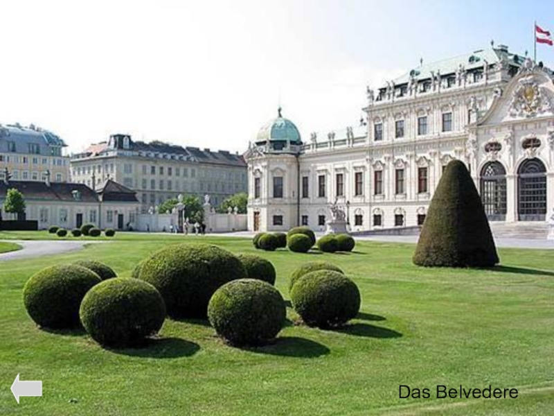 das Gebäude des Parlaments, die Universität. Zu den Meisterwerken des österreichischen Barocks gehören das Schloss und Parkanlagen Belveder.