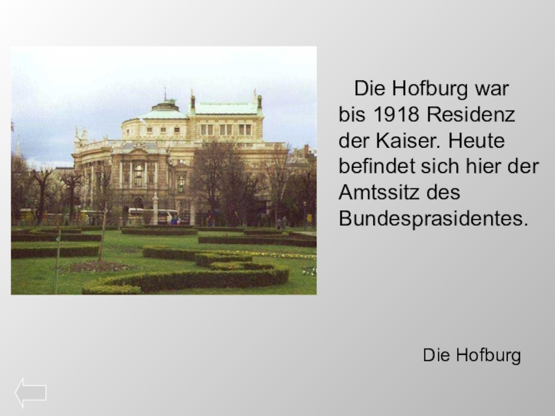 Kaiser. Heute befindet sich hier der Amtssitz des Bundesprasidentes.