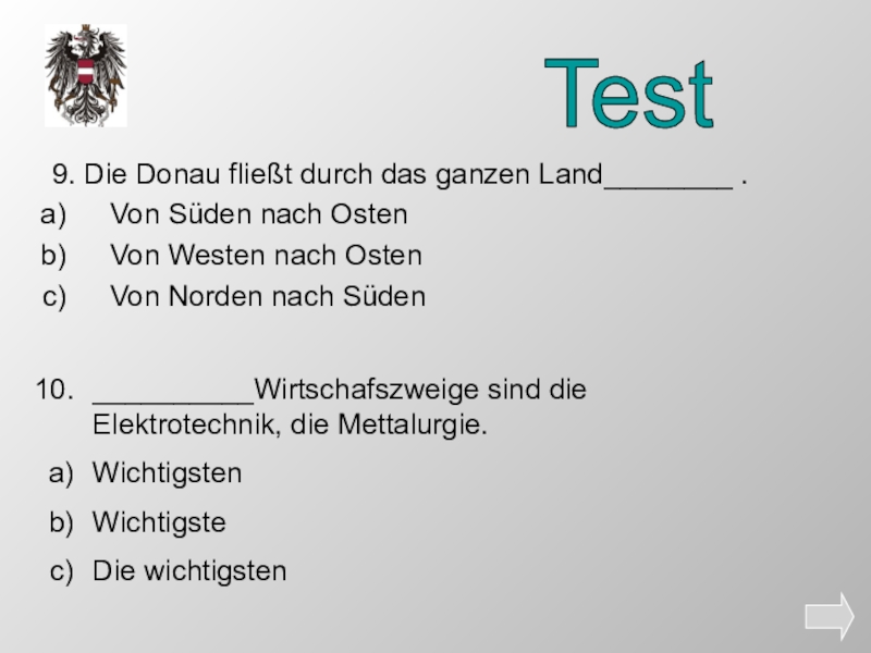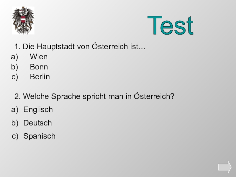 Слайд 391. Die Hauptstadt von Österreich ist…