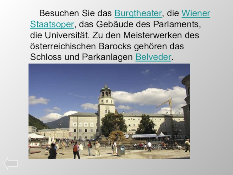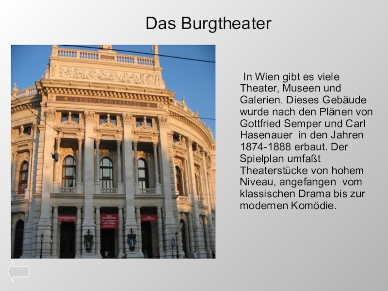 Слайд 11 Besuchen Sie das Burgtheater, die Wiener Staatsoper,