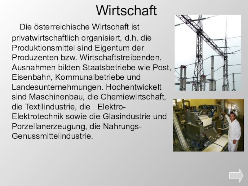 Die österreichische Wirtschaft ist privatwirtschaftlich organisiert, d.h.