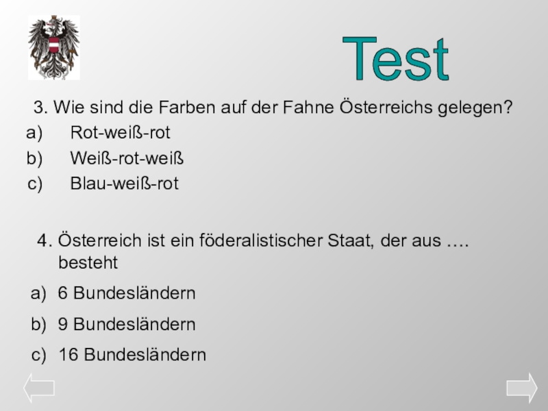 Слайд 403. Wie sind die Farben auf der Fahne Österreichs gelegen?
