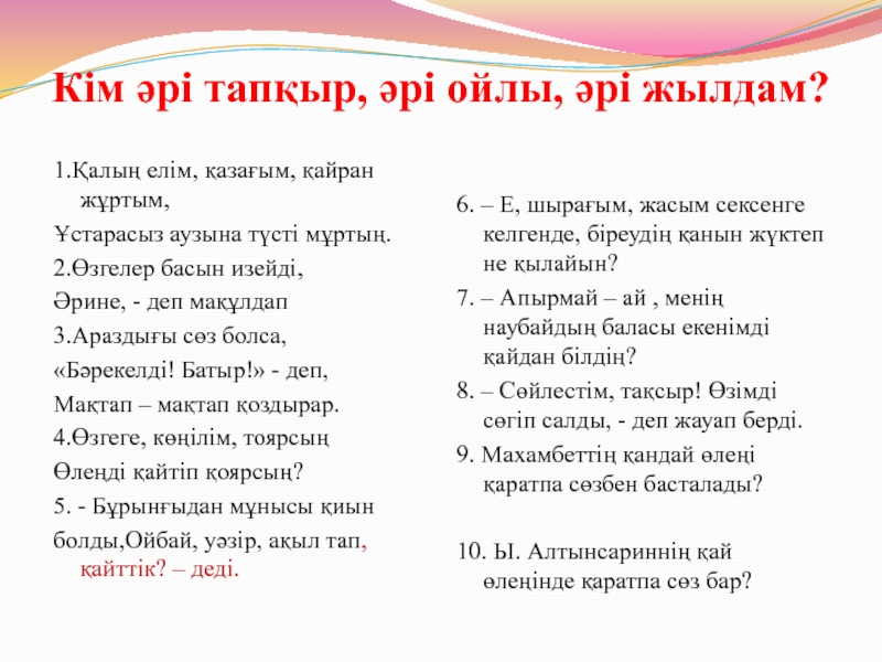 10. Ы. Алтынсариннің қай өлеңінде қаратпа сөз бар?
