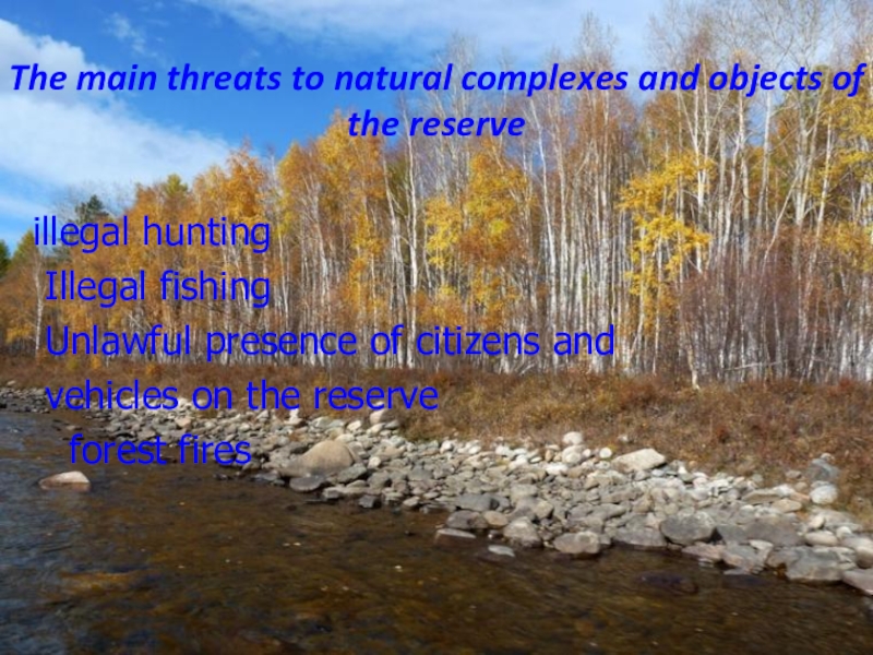Слайд 12The main threats to natural complexes and objects of the reserve