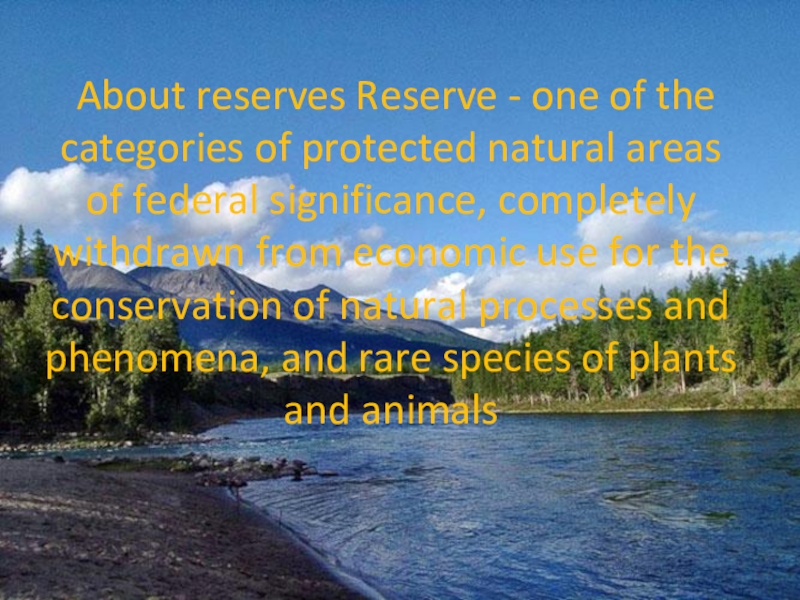 - one of the categories of protected natural areas of federal significance, completely withdrawn from economic use for the conservation of natural processes and phenomena, and rare species of plants and animals