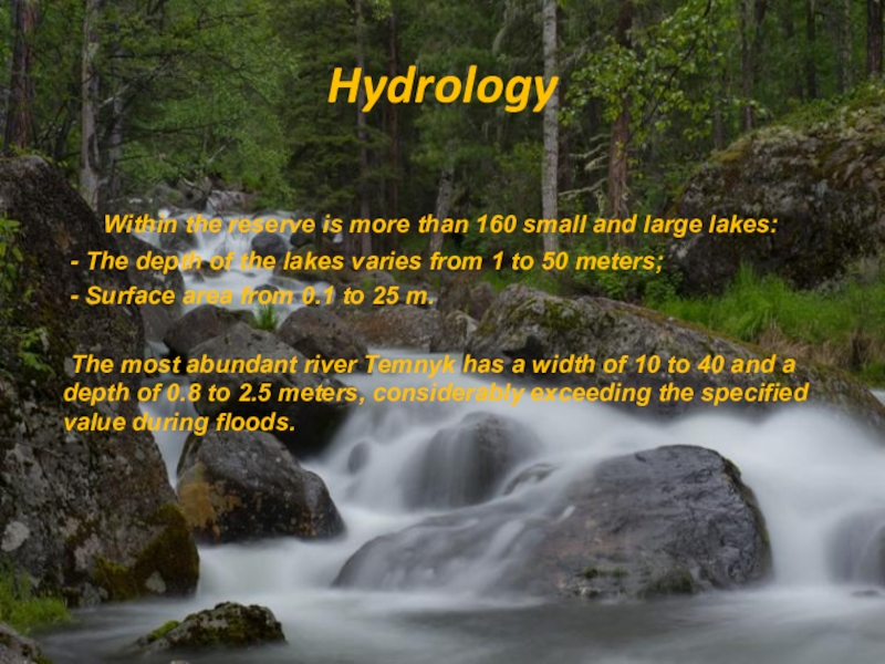 The most abundant river Temnyk has a width of 10 to 40 and a depth of 0.8 to 2.5 meters, considerably exceeding the specified value during floods.