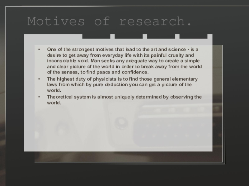 Motives of research.One of the strongest motives that lead to the art and science - is a